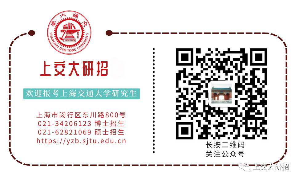 2.复试:7月中旬,直博、直硕在交大闵行校区进行,入围后留意邮件通知。